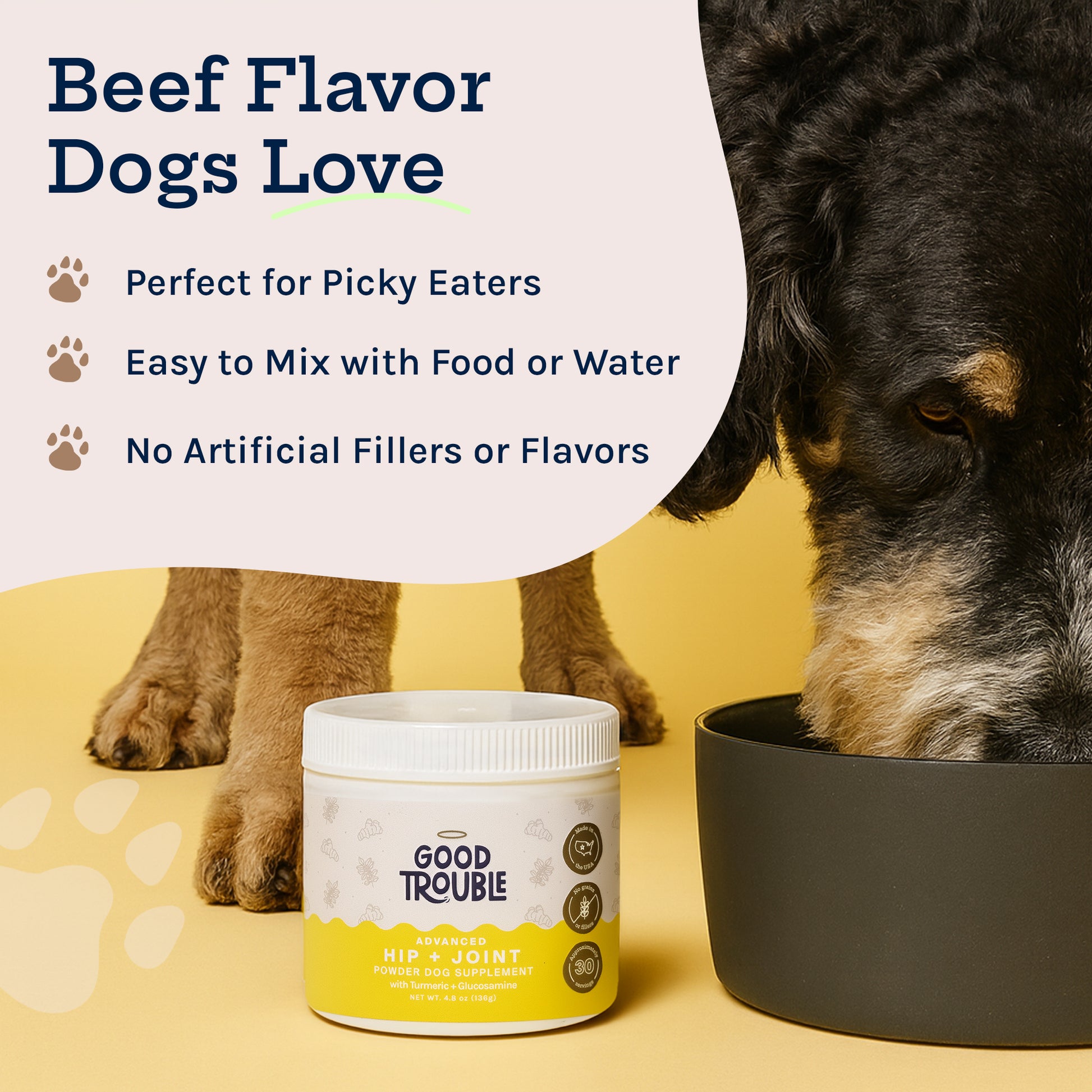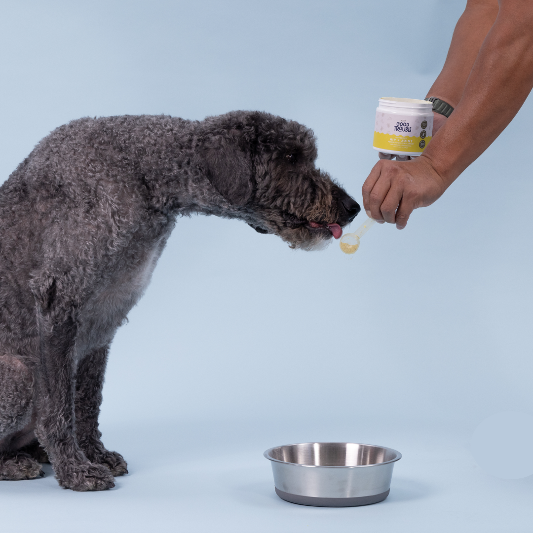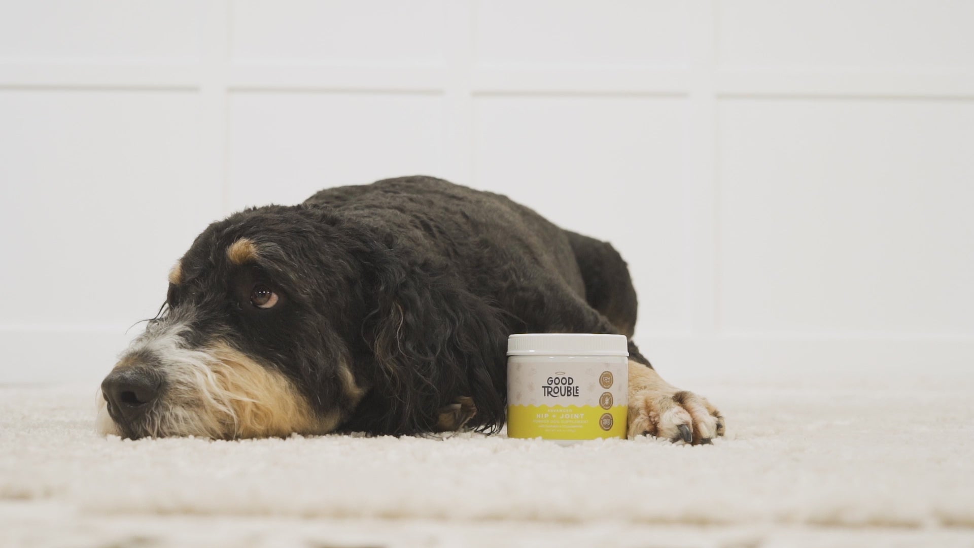 Keep your pup moving with our Hip + Joint Powder, designed to support healthy joints and mobility so they can stay active and pain-free.- No fillers or grains