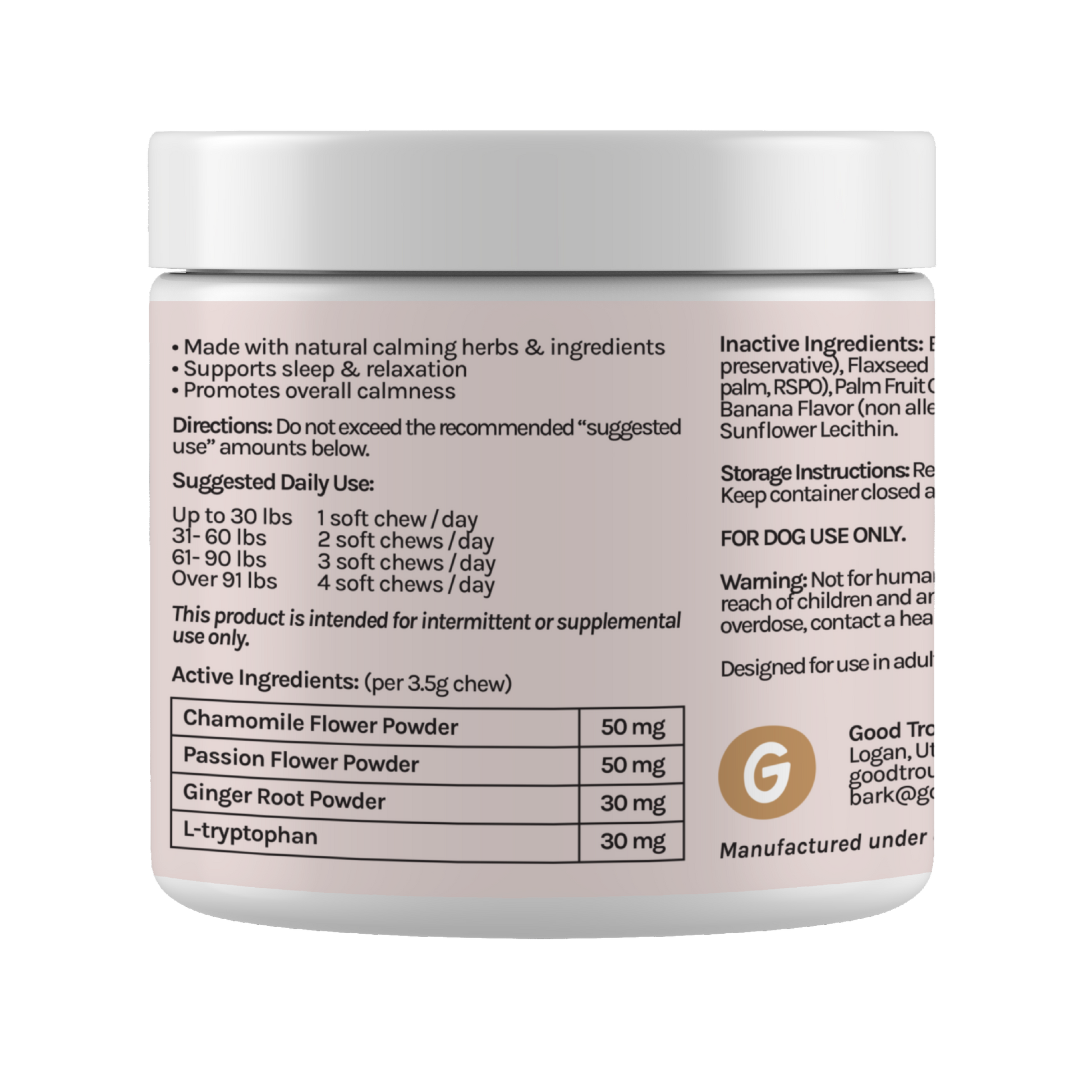 Calm anxiety and nervousness for a happier, more relaxed pup.