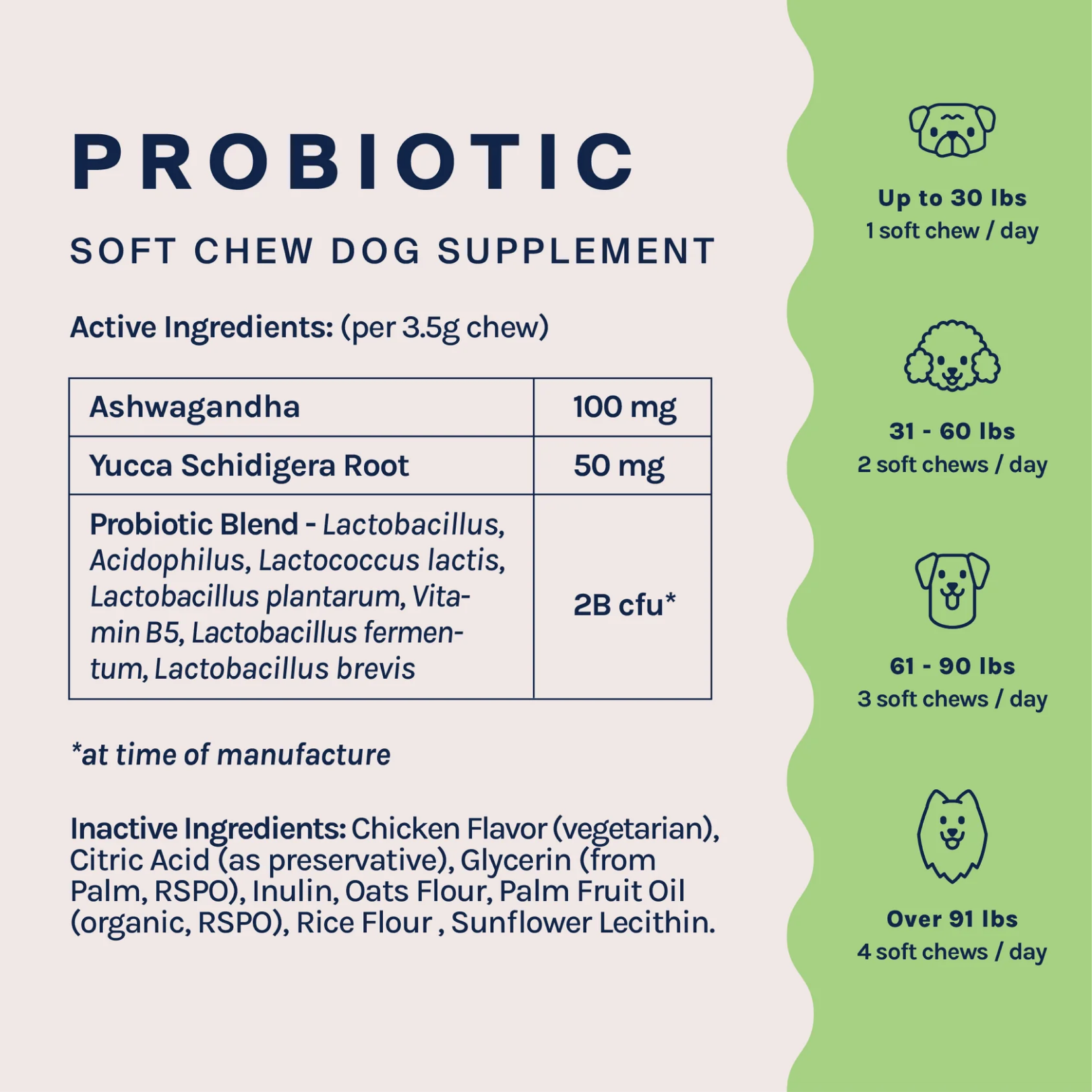 Keep your pup's tummy in top shape with every chew. Support their digestion and overall well-being with soft chews packed with probiotics for a happy, healthy gut.- Premium Human-Grade Ingredients