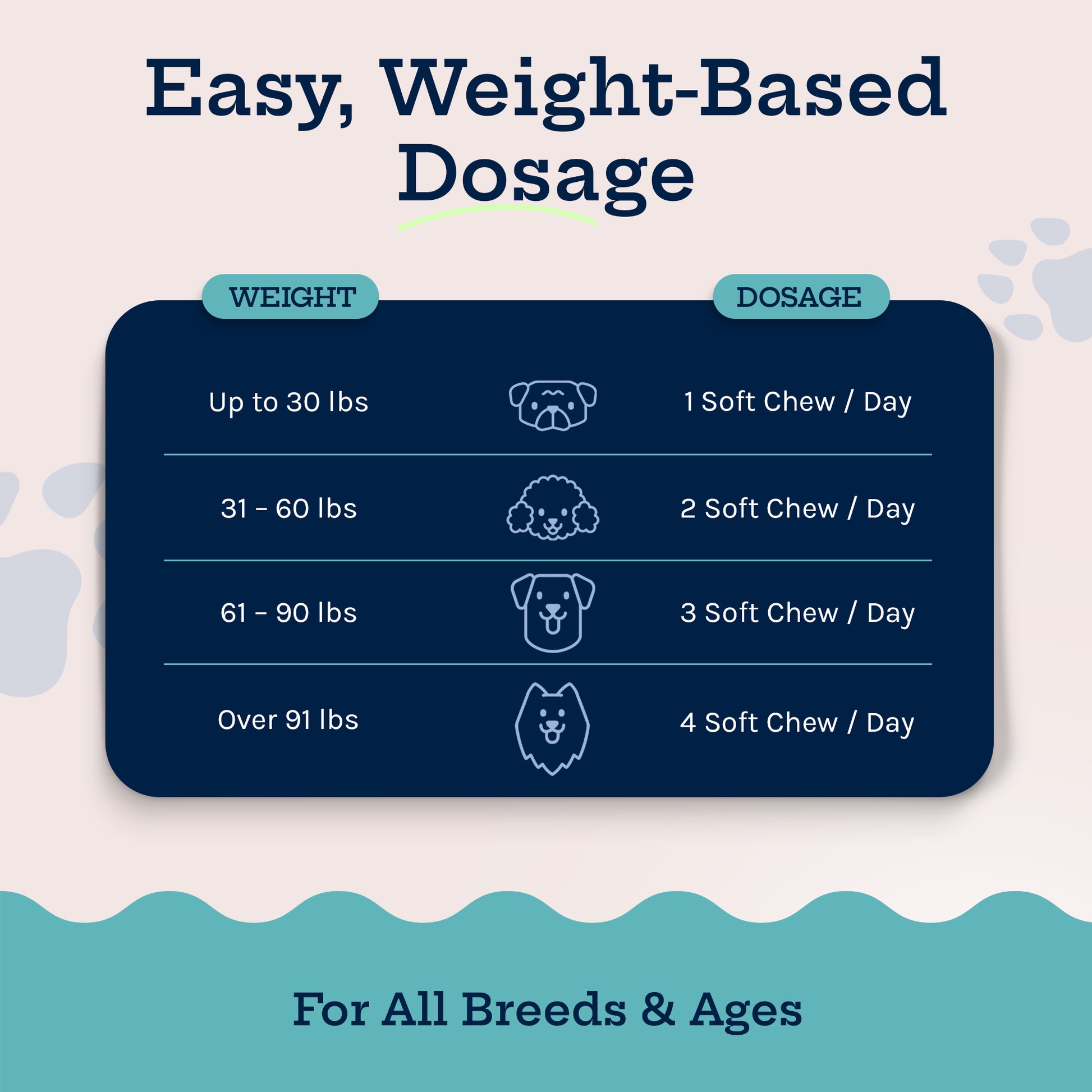 Recommended serving size relative to your dog’s weight: