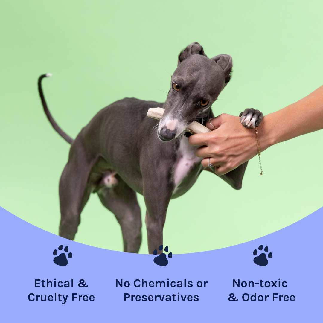 Rest easy knowing your pup’s chewing on a natural, nutritious treat. No more soggy, smelly chew toys!