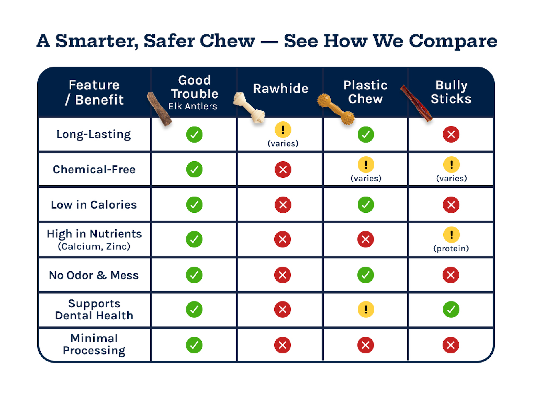 Rest easy knowing your pup’s chewing on a natural, nutritious treat. No more soggy, smelly chew toys!