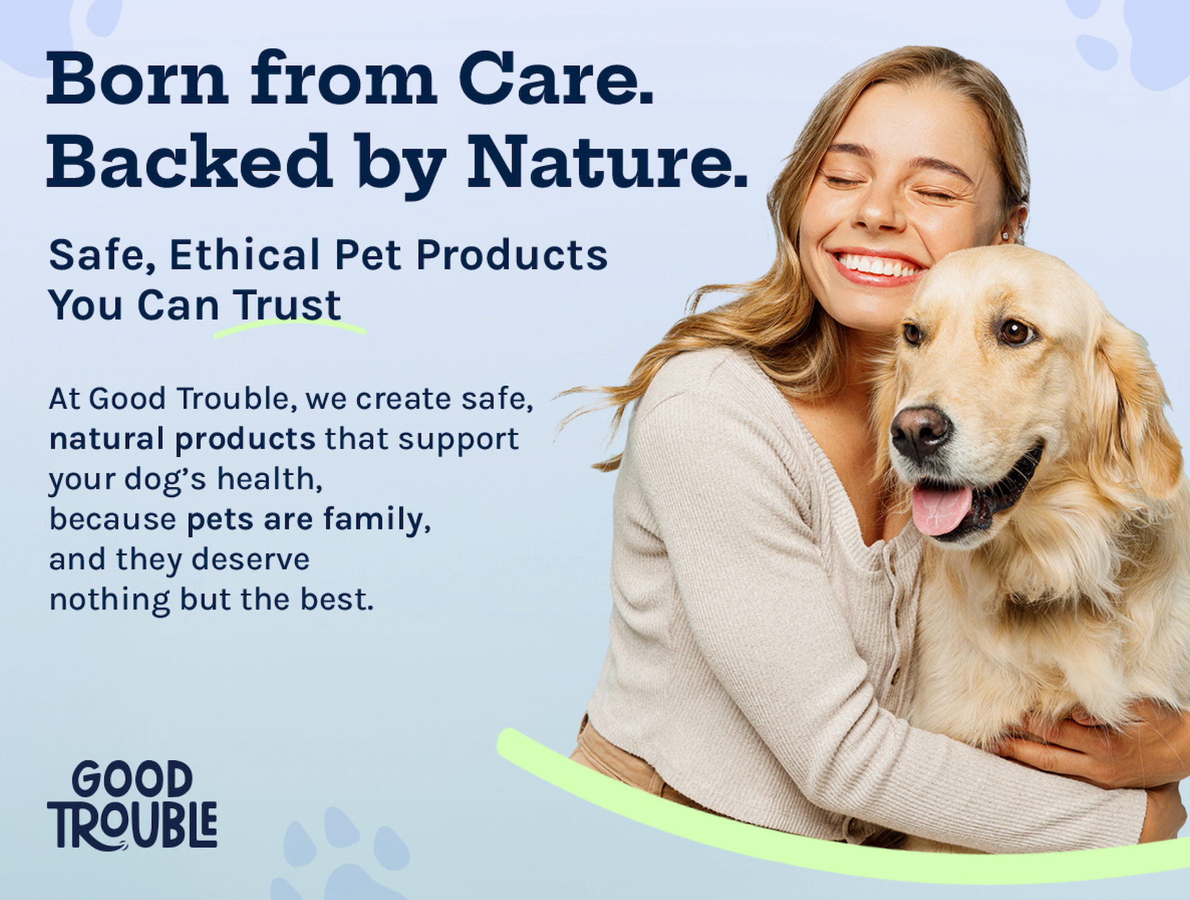 Good Trouble Pets is dedicated to enhancing the lives of pets and their parents through quality products and quality living.